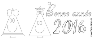 Ce coloriage de sapins de Noël à imprimer peut servir à faire une carte Bonne année 2016. Bonne année 2016 ! |
