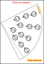 Cône en papier Petite déco de Noël pour enfantsFabrication d'un cône en papier imprimable gratuitement Un cône en papier à imprimer en couleur, avec des dessins de boules de Noël. Pour réaliser une jolie décoration de NOEL. On y va les as de la déco ? |